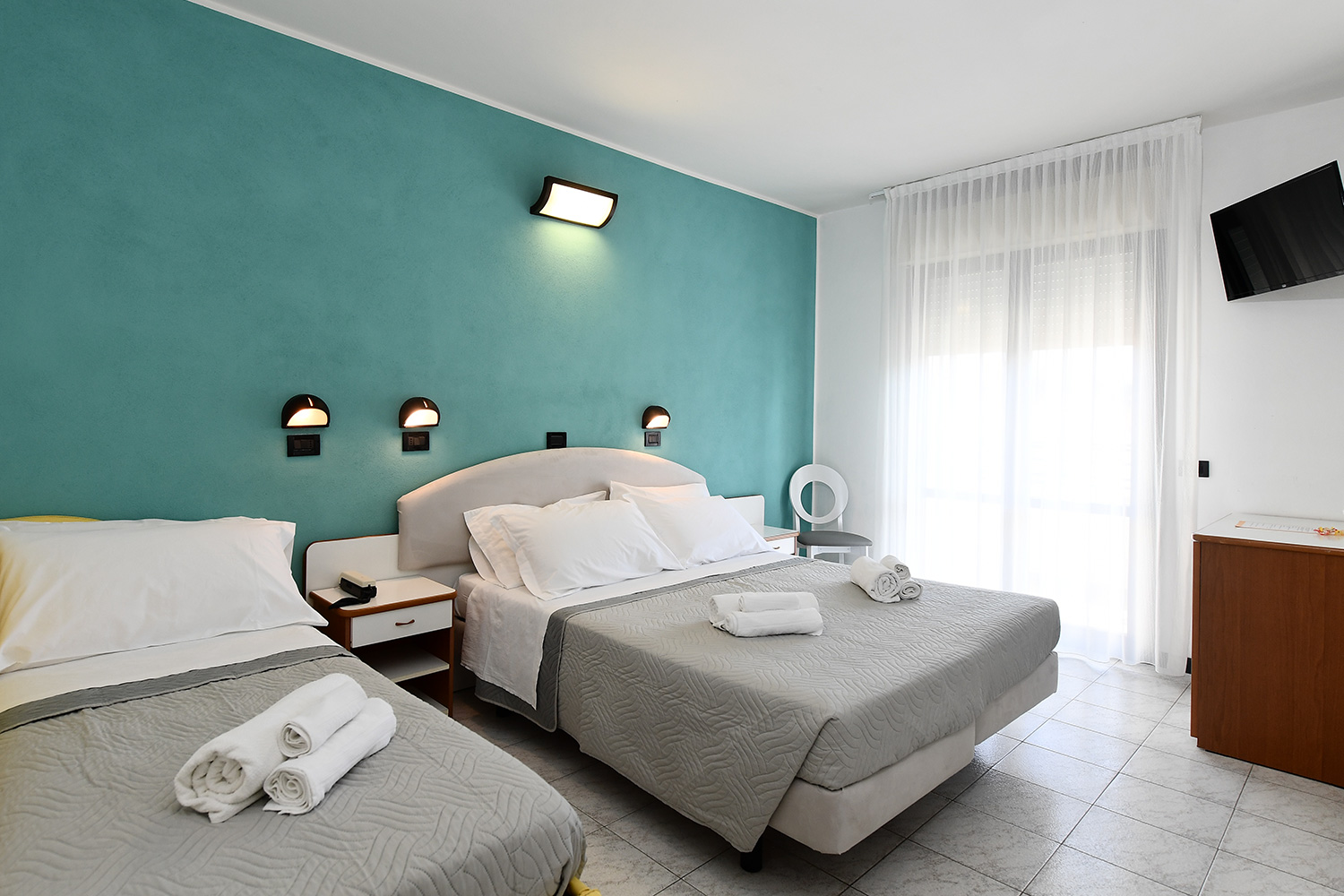 Le camere sono accoglienti, luminose, confortevoli e ben arredate, dispongono di TV, cassaforte, aria condizionata, riscaldamento, servizi privati con doccia e asciugacapelli. (box doccia non presente in tutte le camere)